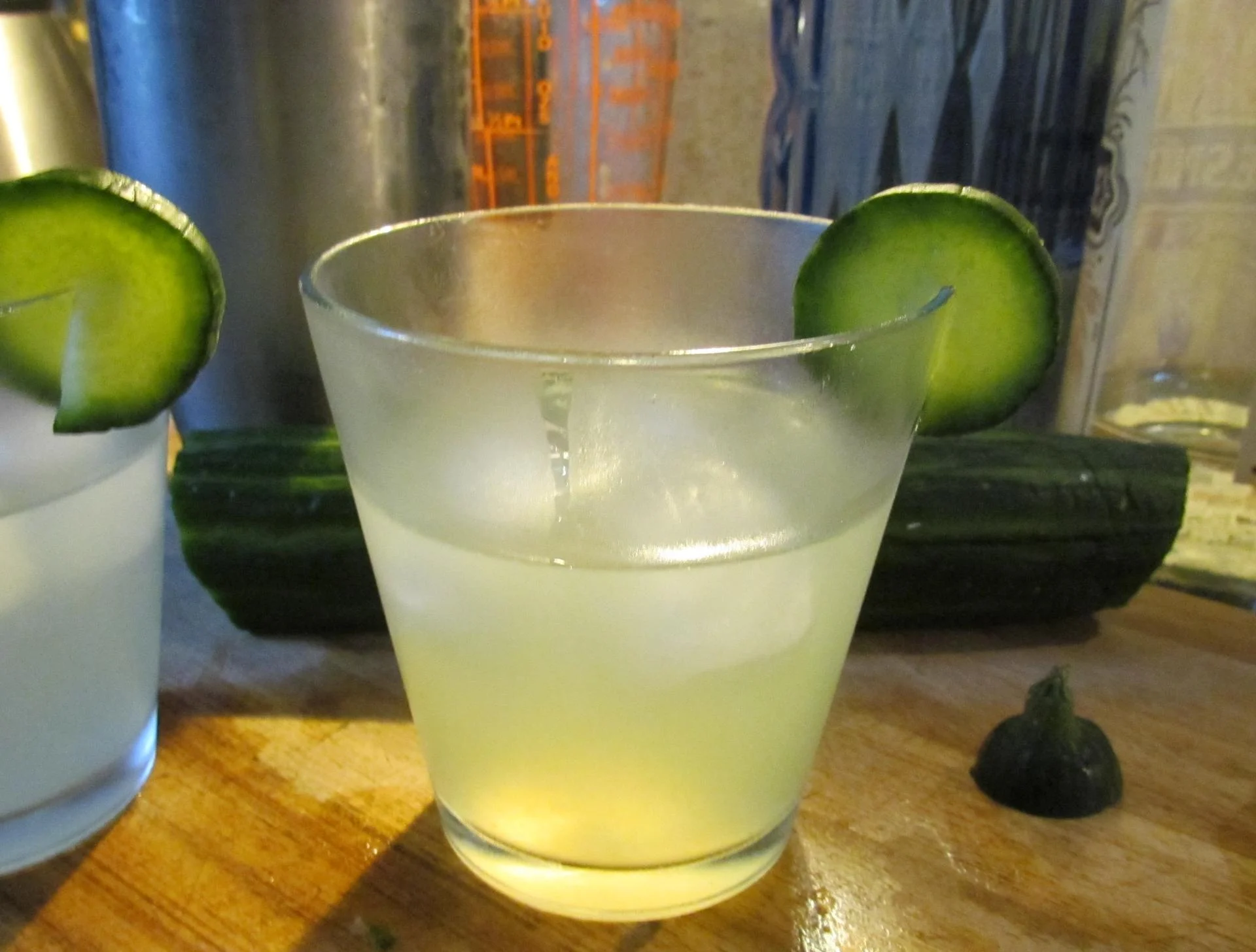Dans un shaker, écrasez les rondelles de concombre avec le sirop.