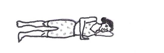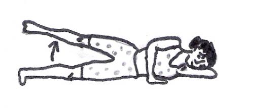 Position de départ : Allongé sur le côté, les deux jambes tendues au sol, une main en appui devant la poitrine pour être bien calé, l’autre reposant la tête.