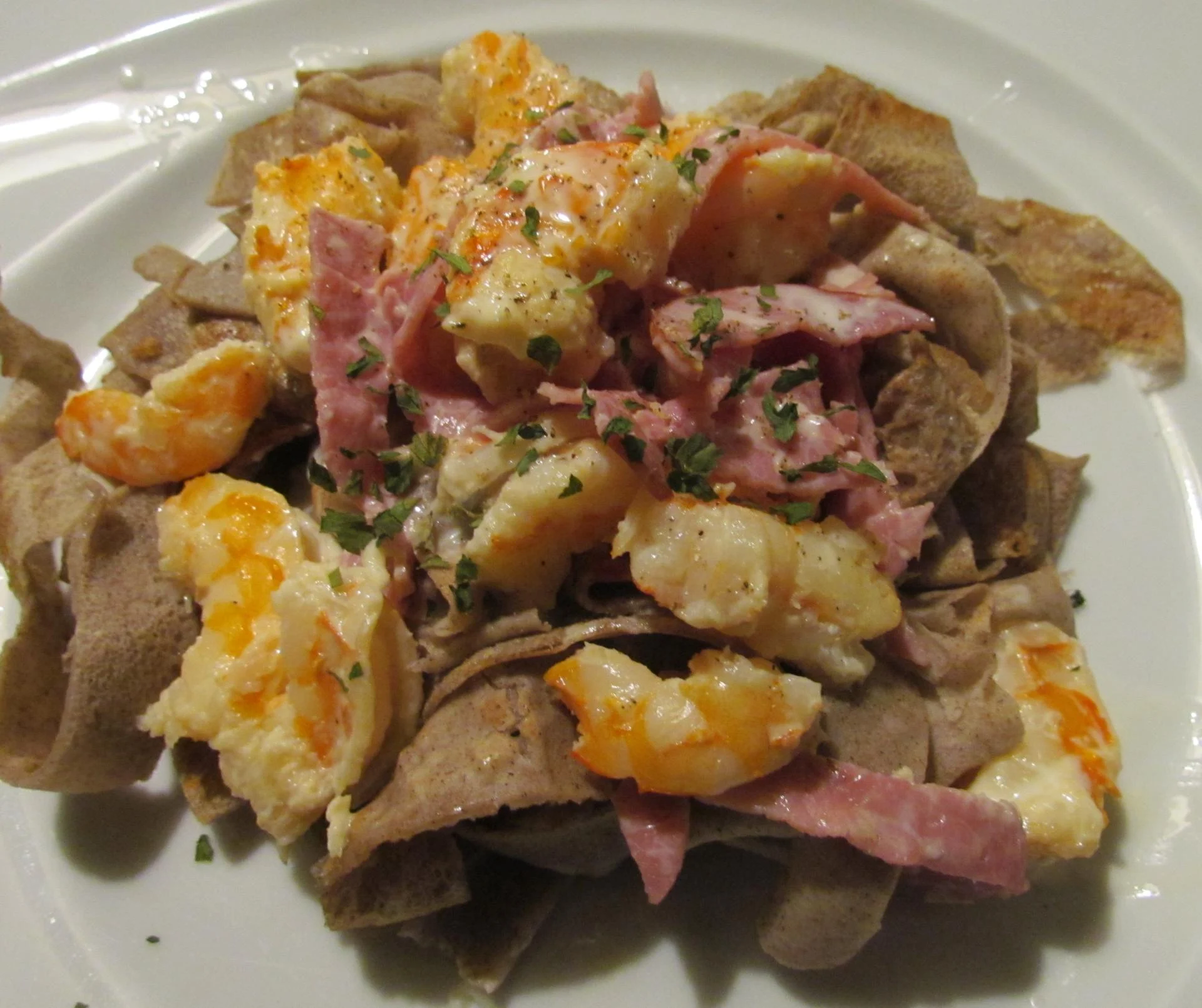Tagliatelles de blé noir aux crevettes
